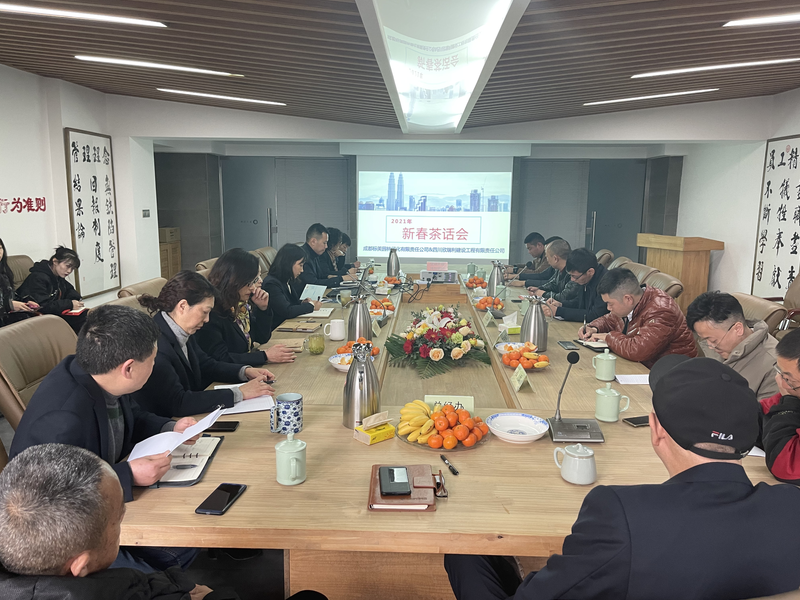 春回大地,万象更新。新春佳节来临之际,公司于2021年2月3日,在会议室召开“2021年度新春茶话会”。本次会议由工程部经理主持,董事长以及公司各部门负责人、各项目部经理参加。会议总结了2020年项目完成情况,客观的分析了在以往工作中存在的问题,并提出了改进措施及建议。